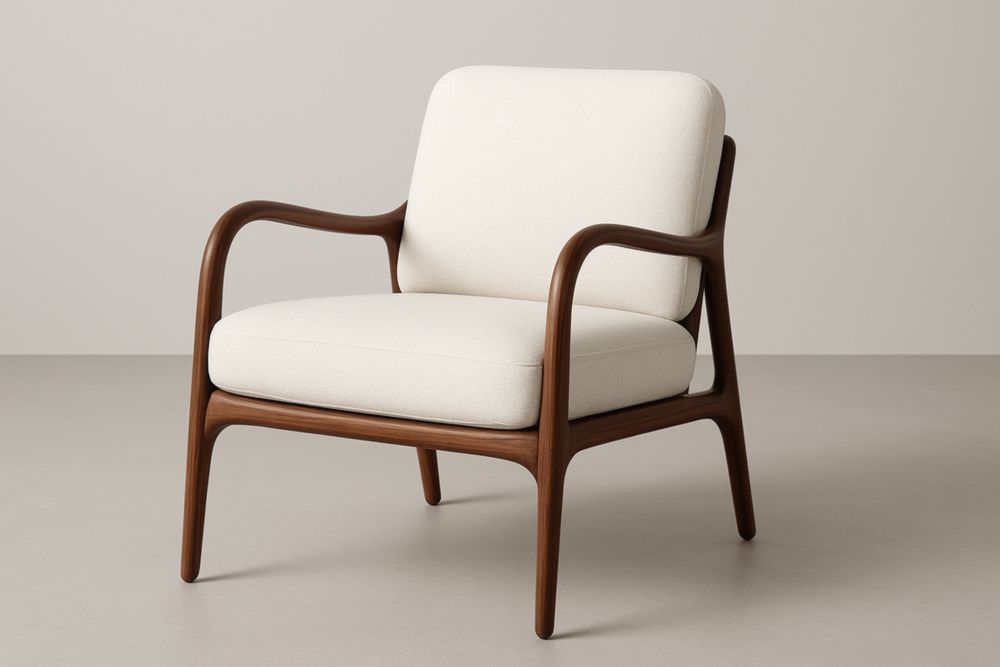 Poltrona in Legno Massello e Tessuto Bianco con cuscini