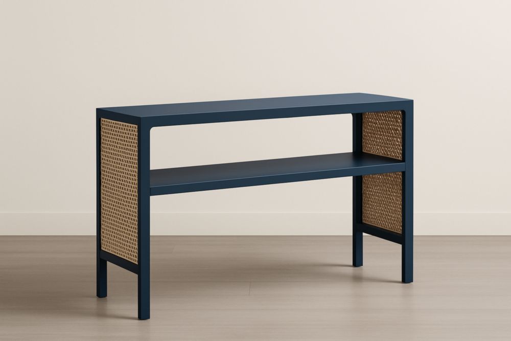 Consolle in Legno e Rattan Blu Scuro 120x40x75 cm