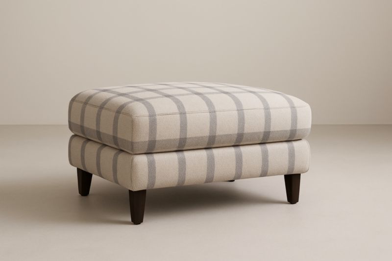 Poggiapiedi in Tessuto a Righe Beige e Grigio