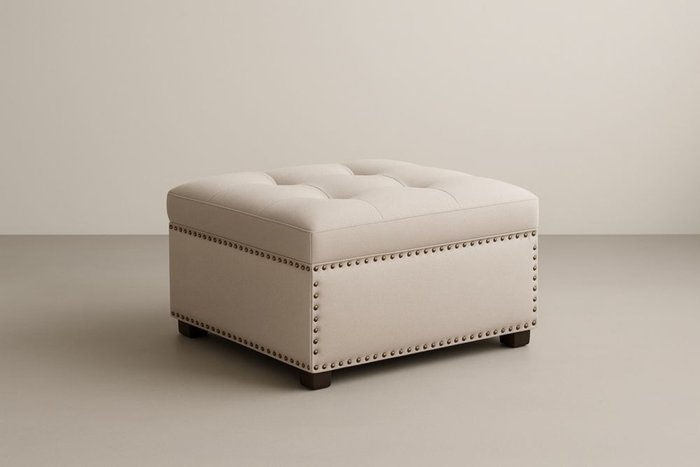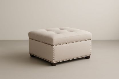 Poggiapiedi quadrato in tessuto beige con rivetti 45x45x35 cm