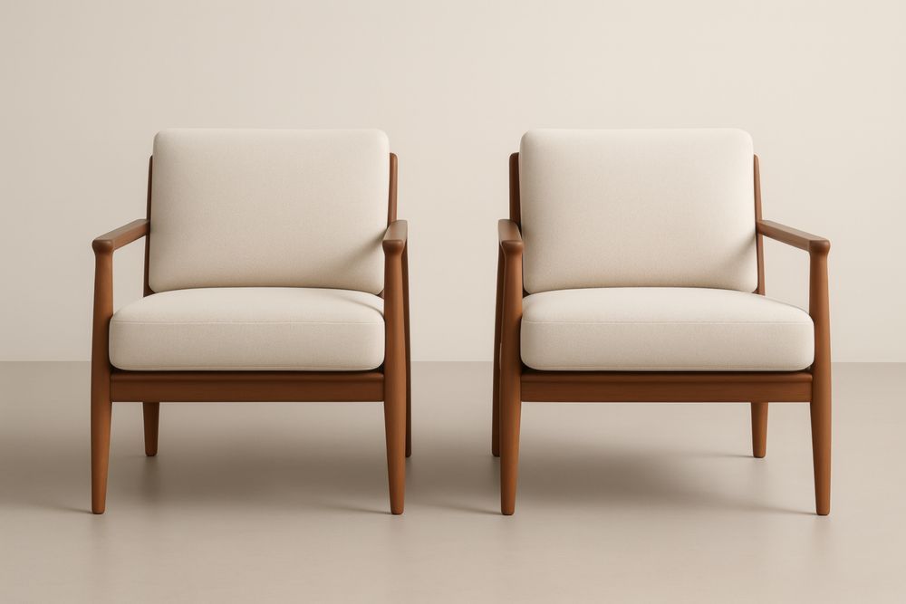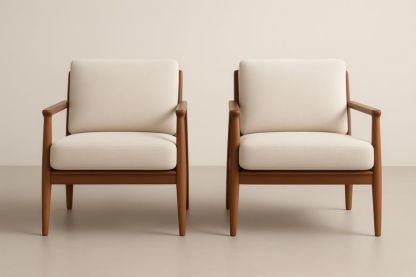 Set di Due Poltrone in Legno massello e Tessuto Crema con cuscini