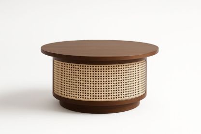 Tavolino Rotondo in Legno e Rattan Marrone 90 cm